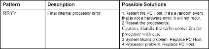 Tarama sırasında bilgisayar ana bilgisayarı kapatıldı, operatörün ana bilgisayara yeniden güç vermesi gerekiyor. Diğeri, her sabah ana bilgisayar başlatıldığında, aralıklı olarak önyükleme yapılamıyor, bilgisayar ana bilgisayarı ölümcül bir hata gösteriyor, ana bilgisayarın ön panelindeki teşhis LED'i iki kırmızı ve iki sarı yanıyor.