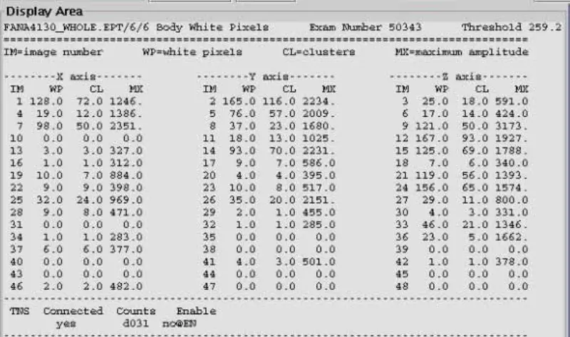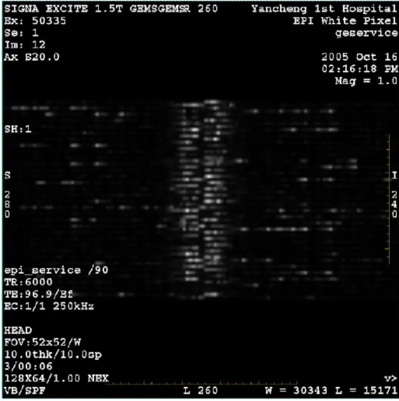 11. GP kartındaki X, Y ve Z Gradient Drive Fiber Optiğinin bağlantısını kesin, EPT beyaz piksel kafası ve gövde taraması yapın. sonuç pastır. Beyaz pikselin gradyan tarafından indüklendiğini gösterir. Beyaz pikselin yalnızca bir eksende mevcut olmadığını gördüm. Daha sonra SGA PS, GP kartını değiştirin, ancak sorun hala devam ediyor. X,Y,Z Gradient Drive Fiber Optiklerini yeniden bağlayın.